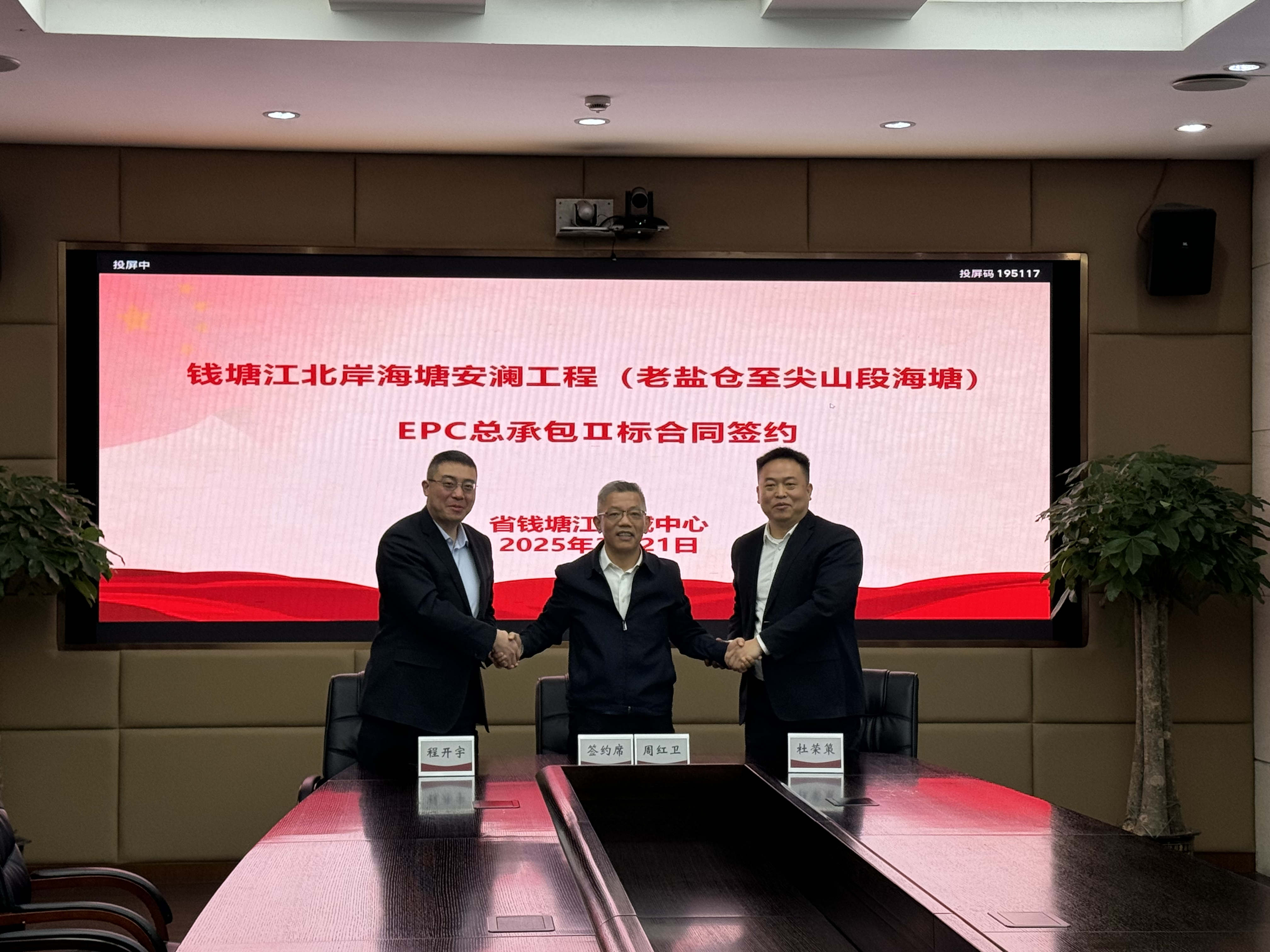 3月21日,錢塘江北岸海塘安瀾工程(老鹽倉(cāng)至尖山段海塘)EPC工程總承包II標(biāo)項(xiàng)目合同在錢塘江流域中心成功簽署。省錢塘江流域中心黨組書(shū)記周紅、海塘工程部和海寧管理站等相關(guān)部門(mén)領(lǐng)導(dǎo)出席簽約儀式,集團(tuán)公司總經(jīng)理杜榮策參加儀式。